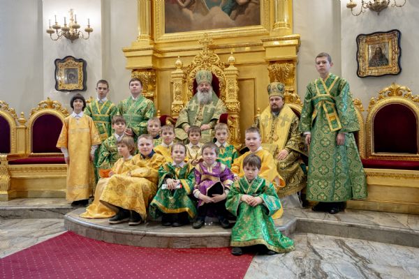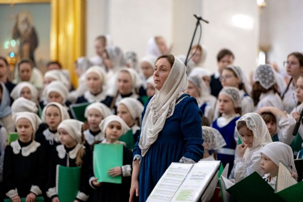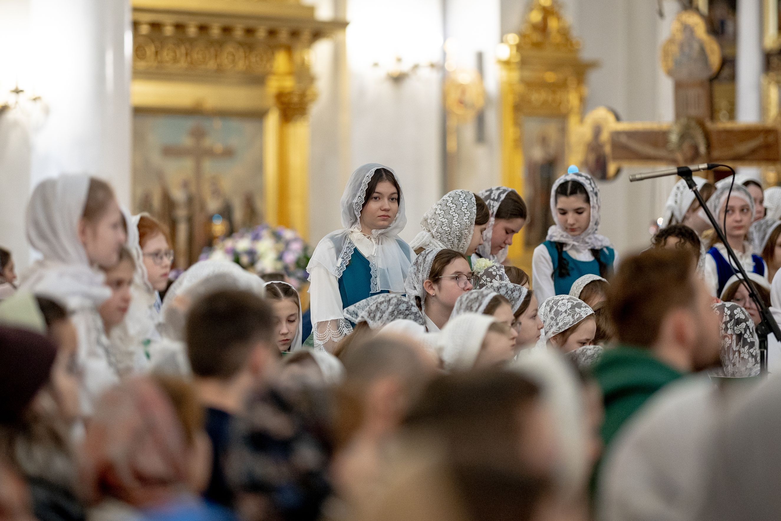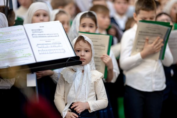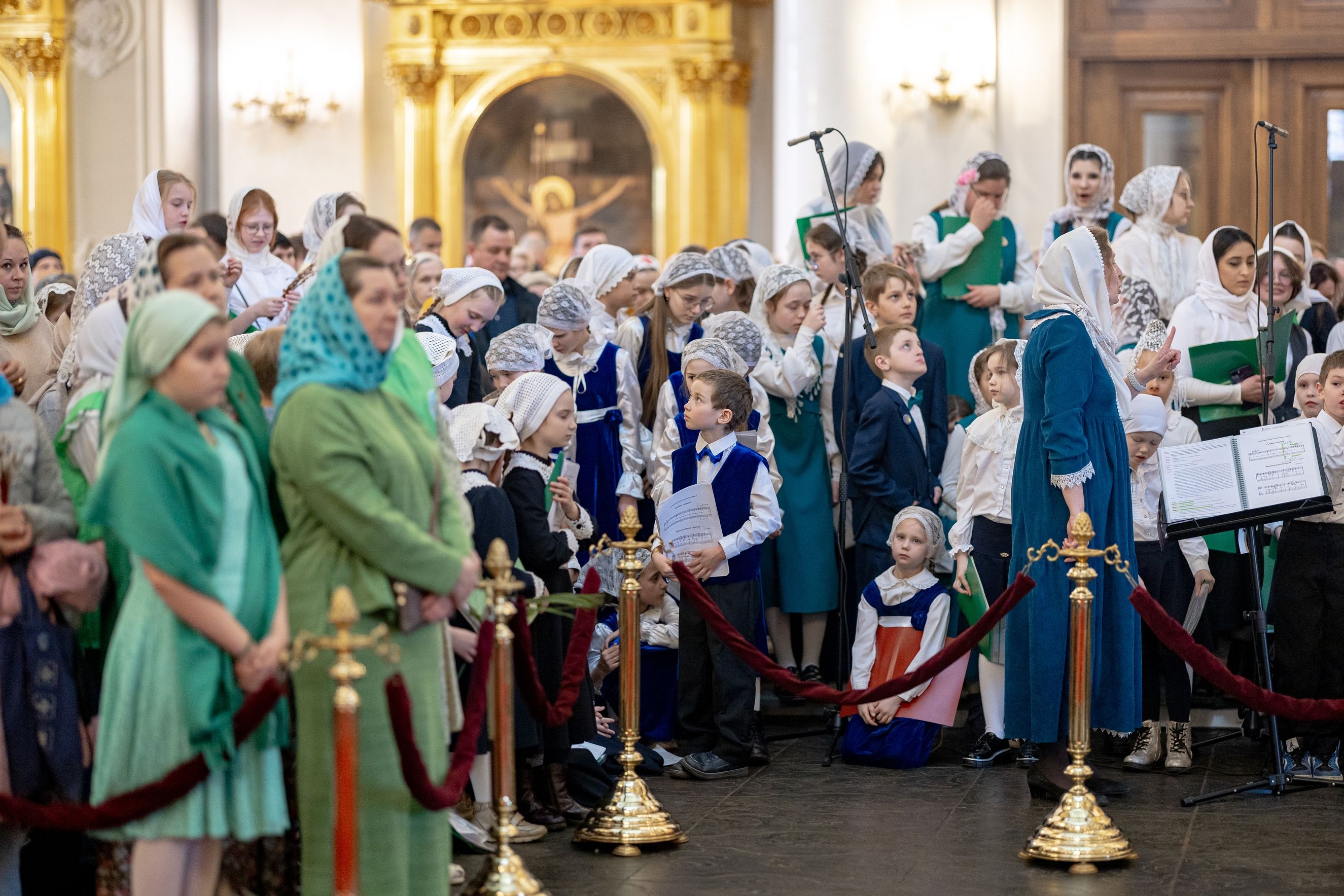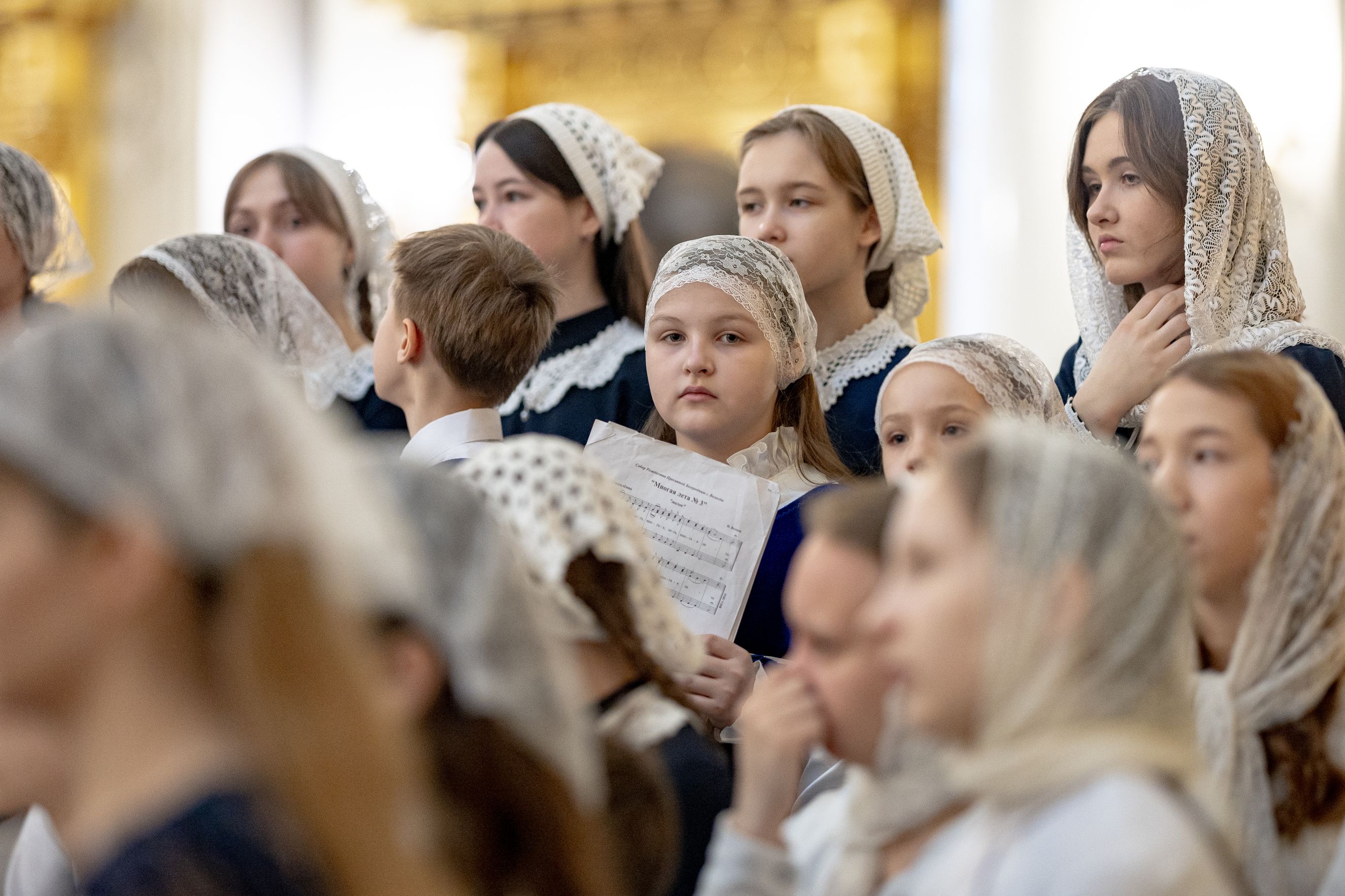 Песнопения исполнили архиерейский смешанный хор под управлением Марины Литвиненко и сводный детский хор воскресных школ Казанской епархии под управлением матушки Полины Павловой.