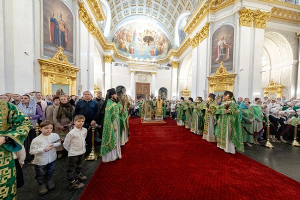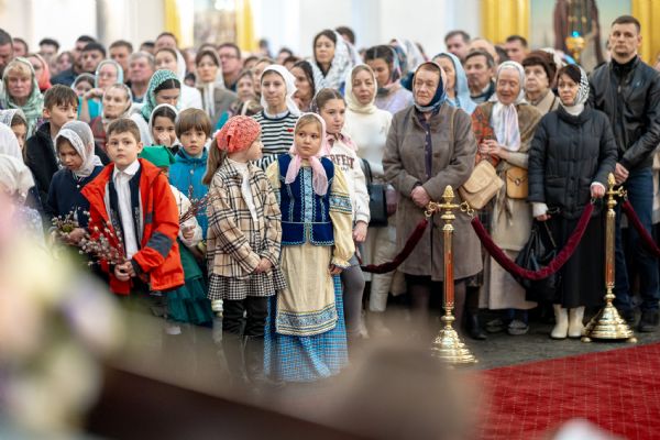 5 апреля 2026 года, в Неделю 6-ю Великого поста, ваий (Вербное воскресенье), праздник Входа Господня в Иерусалим, митрополит Казанский и Татарстанский Кирилл и митрополит Иосиф (Масленников) совершили Божественную литургию в кафедральном соборе Казанской иконы Божией Матери Казанского Богородицкого мужского монастыря.