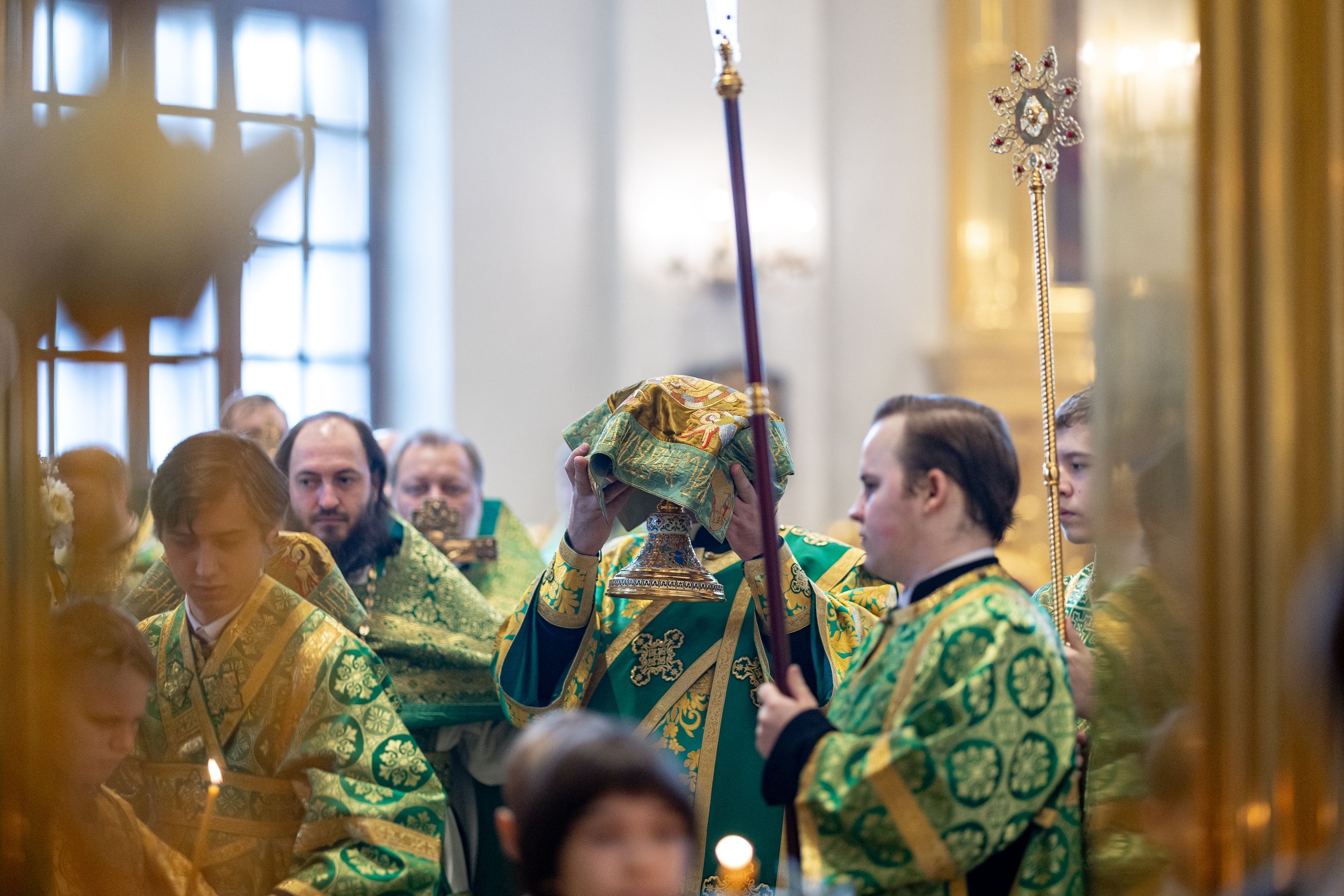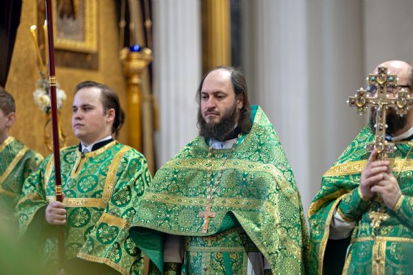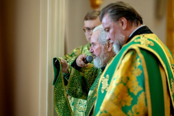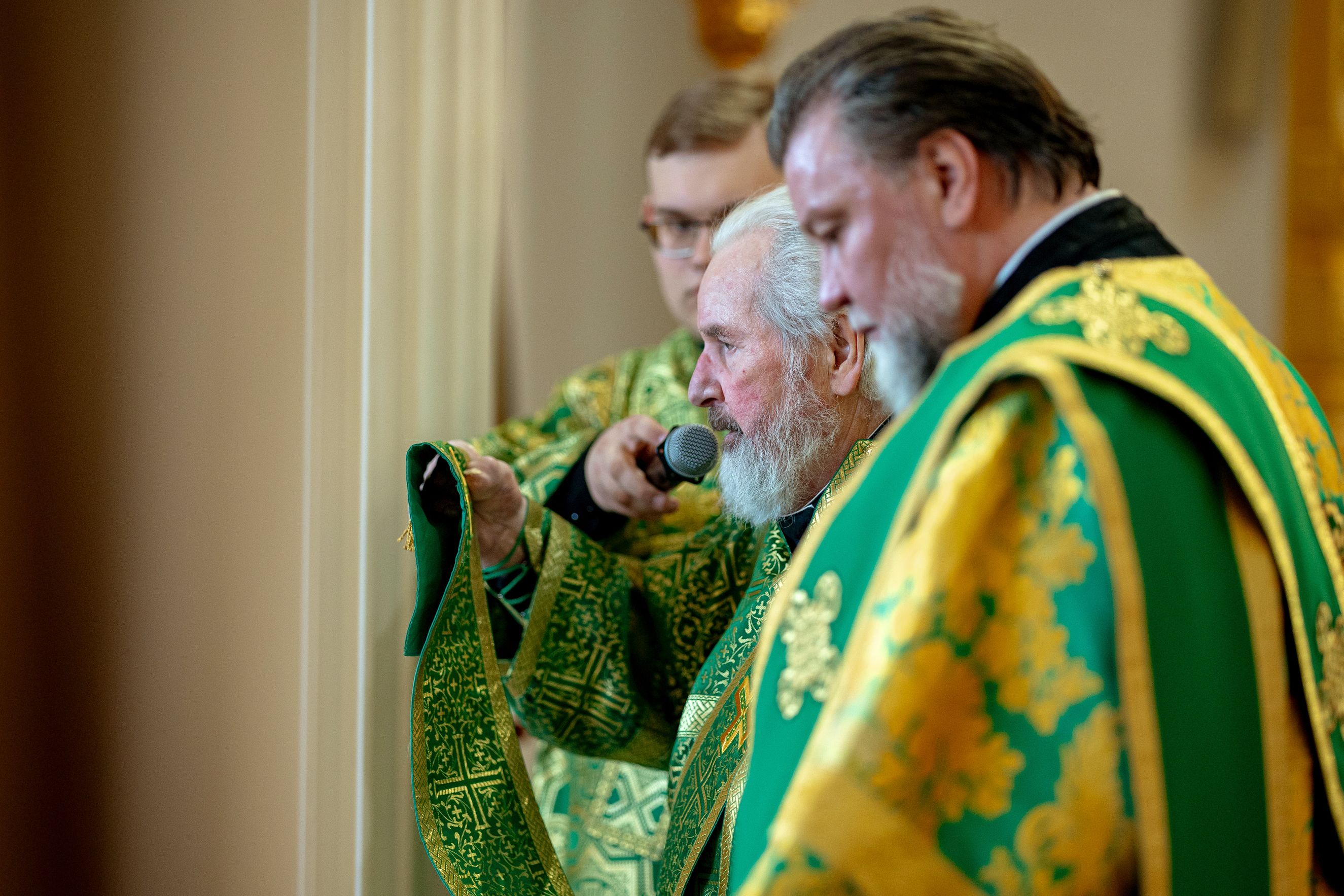 Архипастырям сослужили секретарь Татарстанской митрополии иеромонах Кирилл (Корытко), благочинный III округа города Казани протоиерей Алексий (Краевский), настоятель Воскресенского Новоиерусалимского архиерейского подворья города Казани иеромонах Роман (Модин), настоятель Софийского храма города Казани протоиерей Александр Павлов, председатель отдела Казанской епархии по религиозному образованию и катехизации иерей Александр Данилов, настоятель Сергиевского храма города Казани иерей Артемий Лушкин, клирик Александро-Невского храма города Казани протоиерей Сергий Хохлов, насельник Иоанно-Предтеченского мужского монастыря города Казани иеромонах Платон (Моисеев), насельники Богородицкой обители в священном сане.