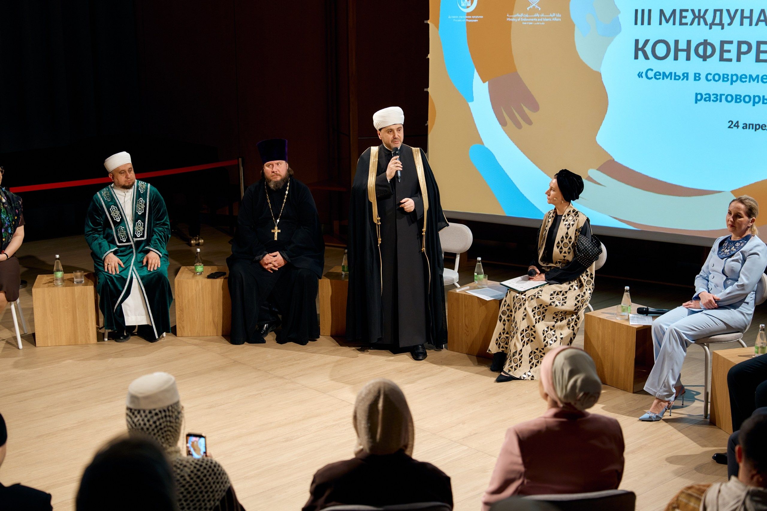 Со словом к присутствующим обратился заместитель председателя Духовного управления мусульман РФ Муфтий Рушан Аббясов. Модератором конференции выступила Стелла Халикова-Брундукова, соучредитель Ассоциации женского сотрудничества.
