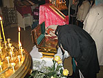 По прибытии мощи были доставлены в кладбищенский храм святых мучениц Веры, Надежды и Любви и матери их Софии (Кировский район).