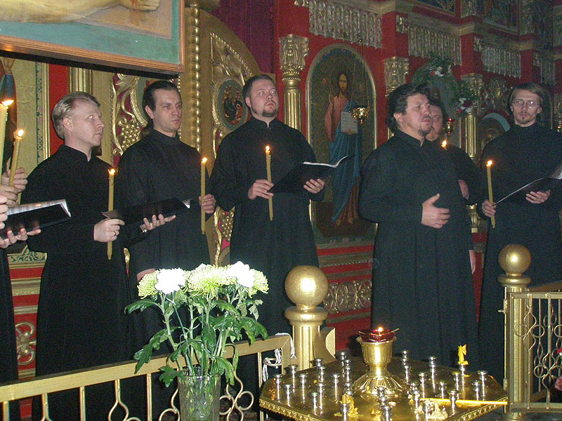 В исполнении хора прозвучали богослужебные стихиры и тропари, духовные и народные песнопения в коолективном и сольном исполнении. Несколько песнопений были посвящены памяти талантливого руководителя хора — архимандрита Матфея (Мормыля).