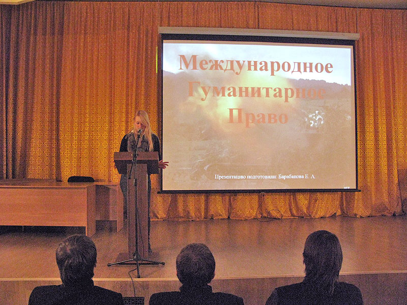 Кроме того был сделан отдельный доклад по основным пунктам Международного гуманитарного права, а также подробно рассмотрены законы и постановления Женевских конвенций.
