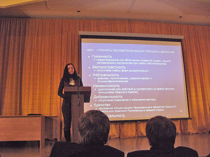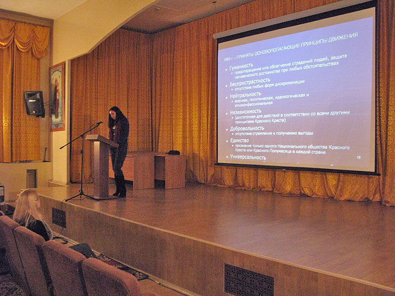 Сотрудники Красного Креста провели в актовом зале семинарии презентацию, на которой присутствовали все студенты Духовной школы. Были рассказаны основные сведения об организации Красного Креста, истории ее возникновения и развития, целях и задачах, принципах осуществления деятельности.