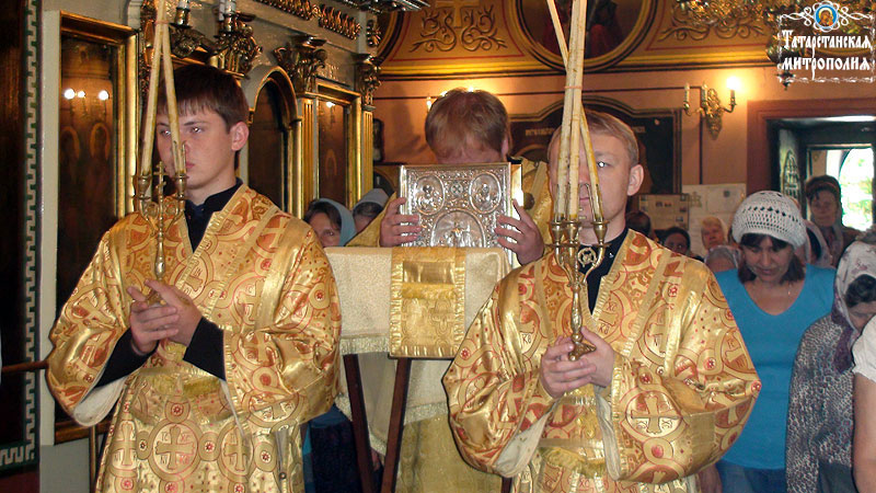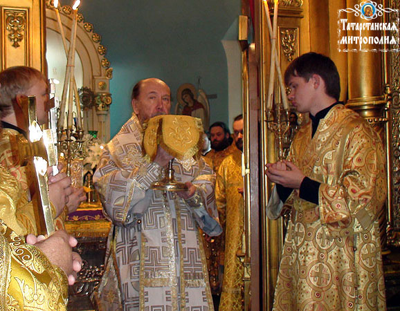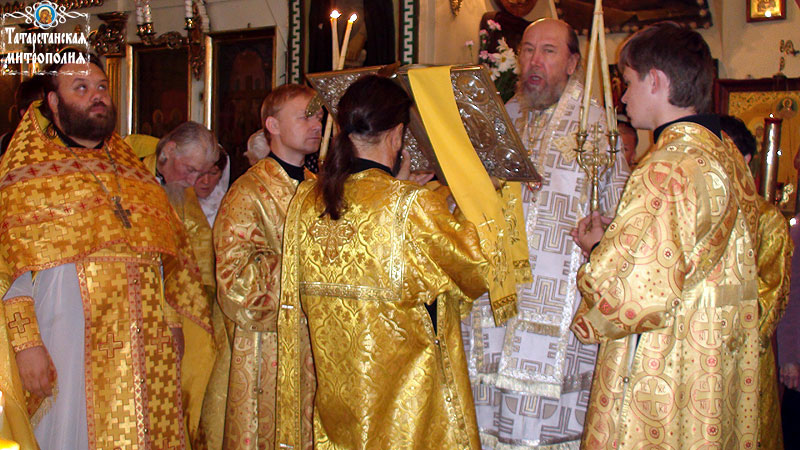 Главе Татарстанской митрополии сослужило духовенство храма и города.