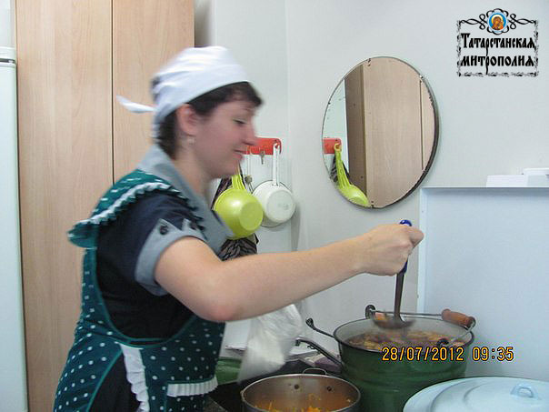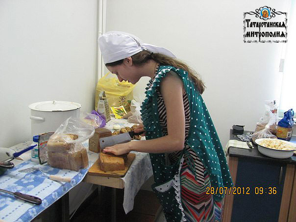 Обед готовят сами сестры, многие прихожане храма оказывают им посильную помощь (жертвуют продукты, помогают физически и т.п.). Трапеза непременно начинается и заканчивается общей молитвой и проходит в теплой, дружественной обстановке. Общее количество окормляемых превышает 35 человек.