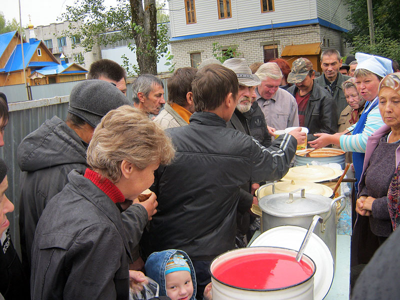 Каждая трапеза начинается с молитвы. По той причине, что некоторые люди приходят кушать в нетрезвом состоянии, настоятель прихода Николая Чудотворца иерей Сергий Петров после еды проводит беседы о спиртном, рассказывая какой вред приносят алкоголь и наркотики.