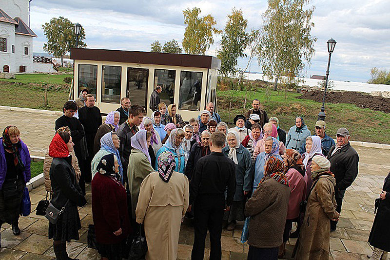 После концерта и трапезы, пожилые люди получили приглашение поехать в паломническую поездку на о. Свияжск. В обители паломники приложились к местным святыням, посмотрели уникальные фрески. Один из служителей монастыря провел интересную и содержательную экскурсию, познакомив всех с историей острова и строительством крепости, размером которой не было равных в России. Также прихожане познакомились с кузнечным ремеслом, когда-то процветавшим в граде Свияжске.