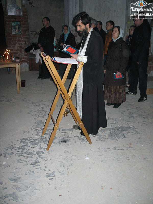 Богослужение совершили клирики и братия Свято-Введенского Кизического мужского монастыря г. Казани, к которому приписан храм-памятник.