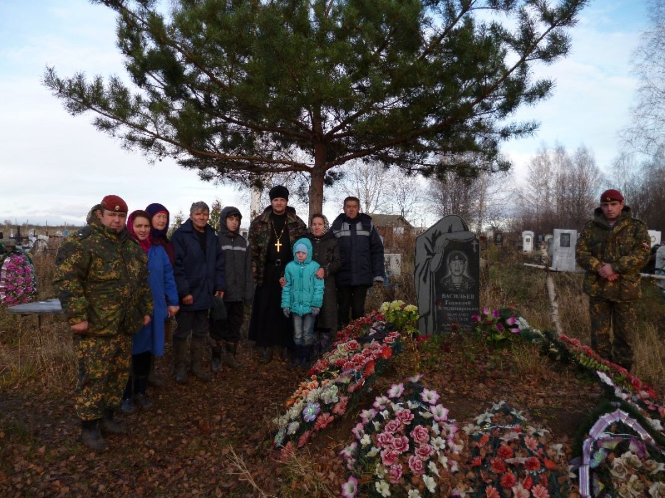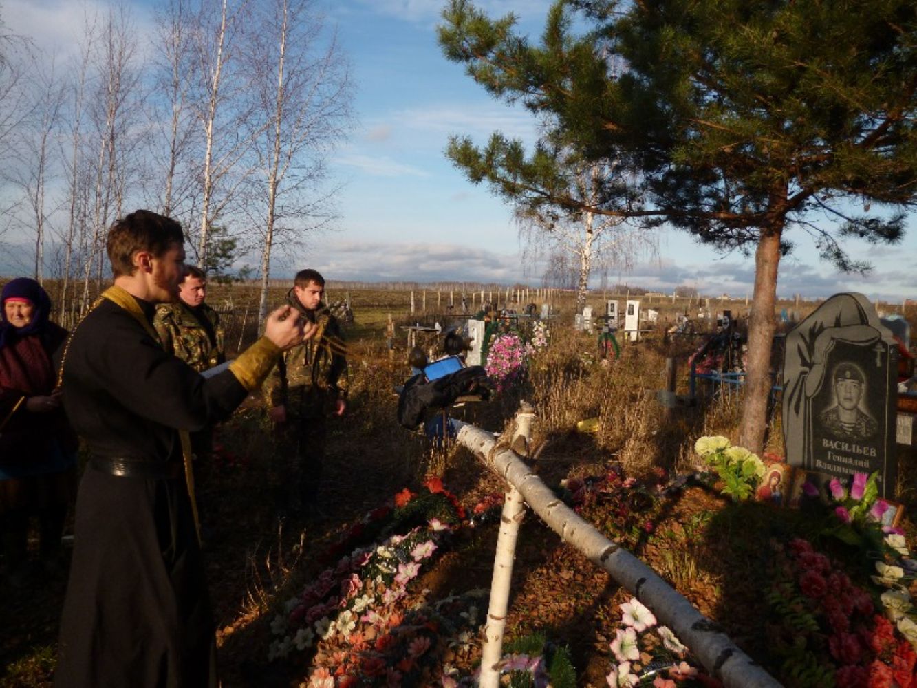 Панихиду по погибшему солдату священнослужитель совершил на его могиле в с. Большие Выла Аликовского района Республики Чувашия, после чего встретился с родителями ефрейтора.