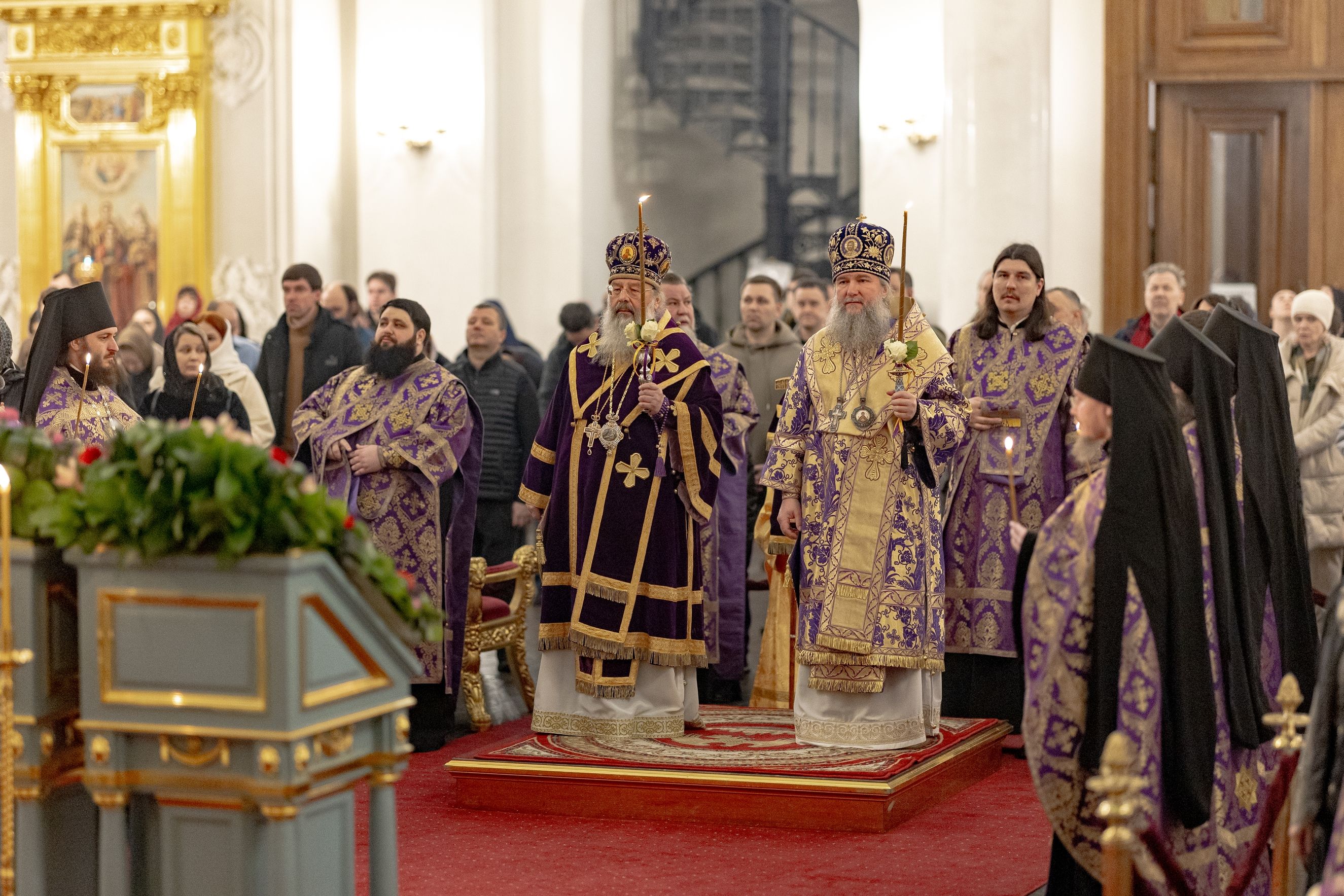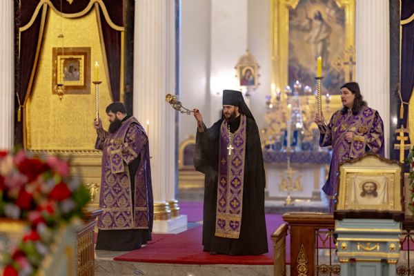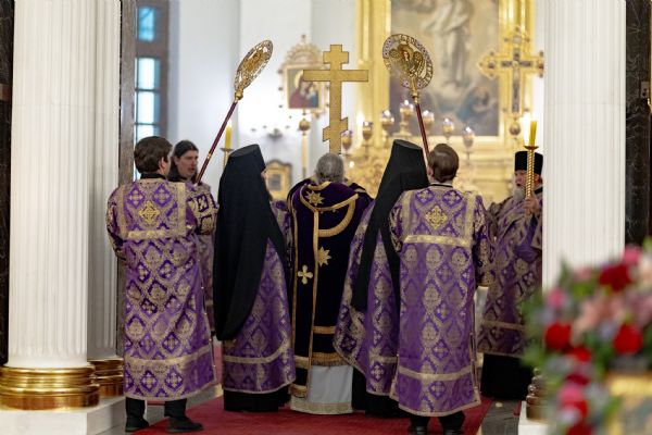 Вечером 14 марта 2026 года, в канун Недели 3-й Великого поста, Крестопоклонной, митрополит Казанский и Татарстанский Кирилл и митрополит Екатеринбургский и Верхотурский Евгений совершили всенощное бдение в кафедральном соборе Казанской иконы Божией Матери Казанского Богородицкого мужского монастыря.