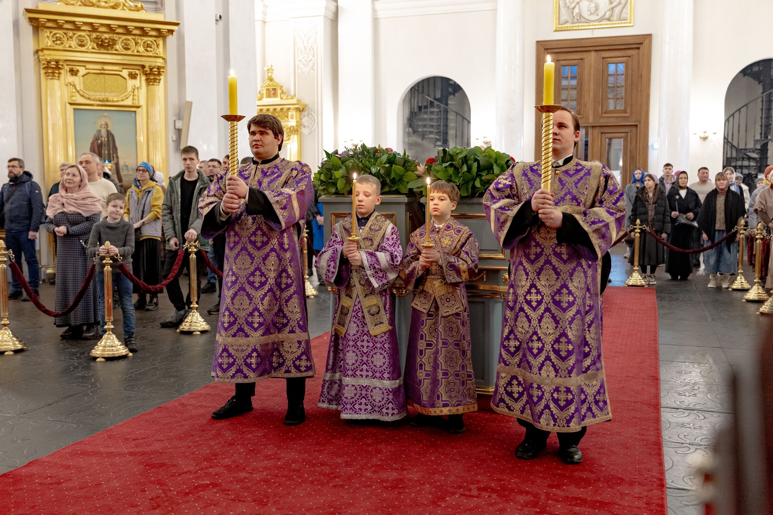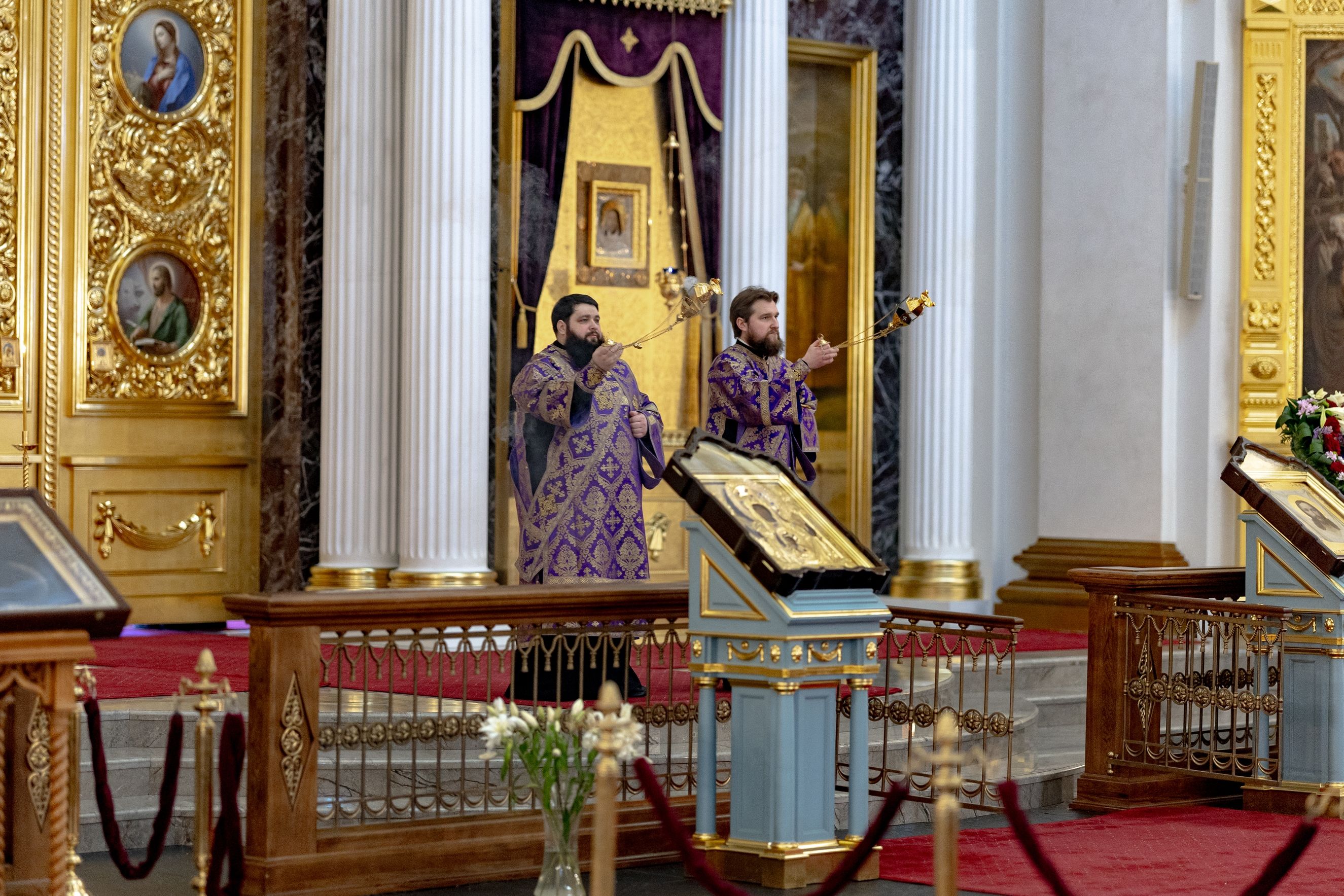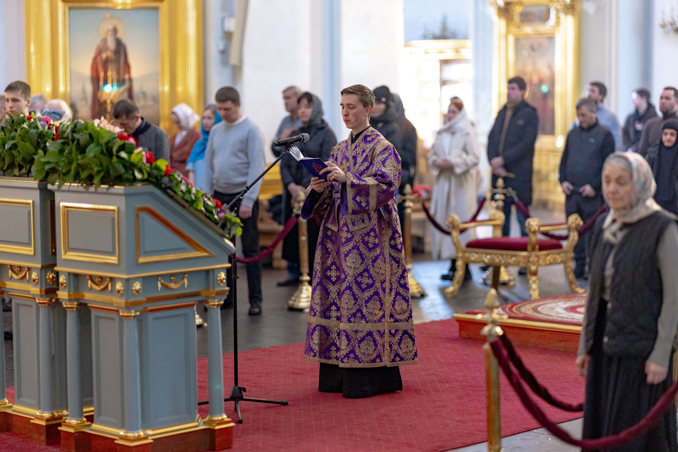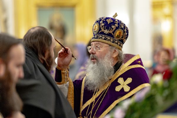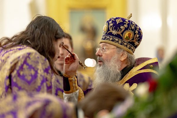 Песнопения исполнили два архиерейских хора: смешанный под управлением Марины Литвиненко и мужской под управлением Дениса Рогова.